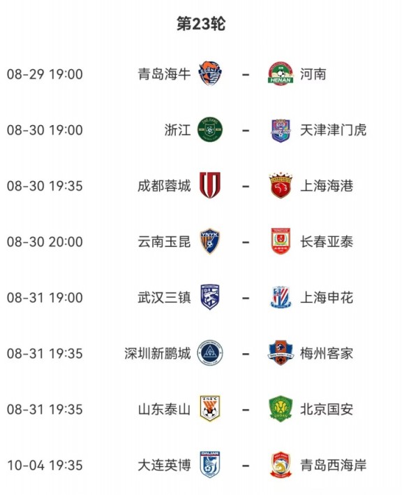 中超第23轮赛程↓