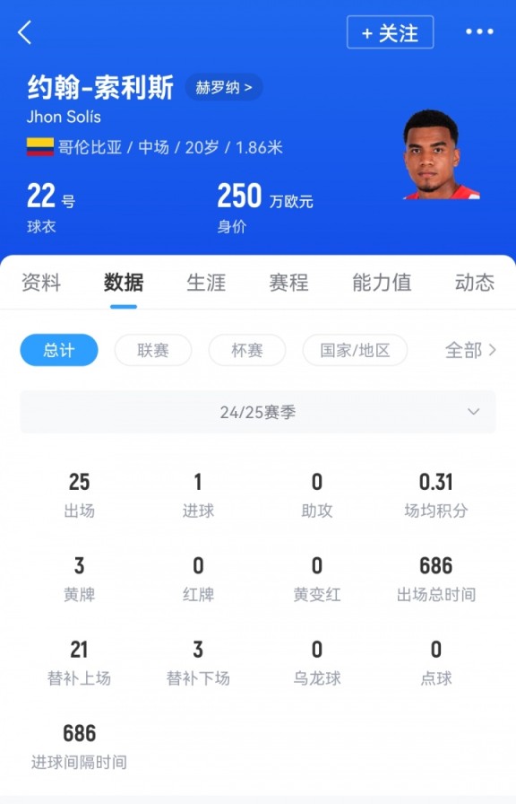 索利斯控球稳定,去年有限出场中传球完成率达90.4%,且能胜任防守中场或前中后卫的多面手角色。 无论赫罗纳是否准备好,一个新时代已到来,20岁的索利斯将成为米歇尔下个战术转变的前锋。
