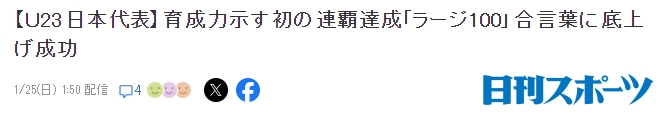 01月25日讯 U23亚洲杯决赛,日本U23战胜U23国足获得冠军,赛后日媒《日刊体育》对比赛进行了报道,并表示:日本队一直以”百人阵容(100名球员的深度)为口号,力求提升整体实力。